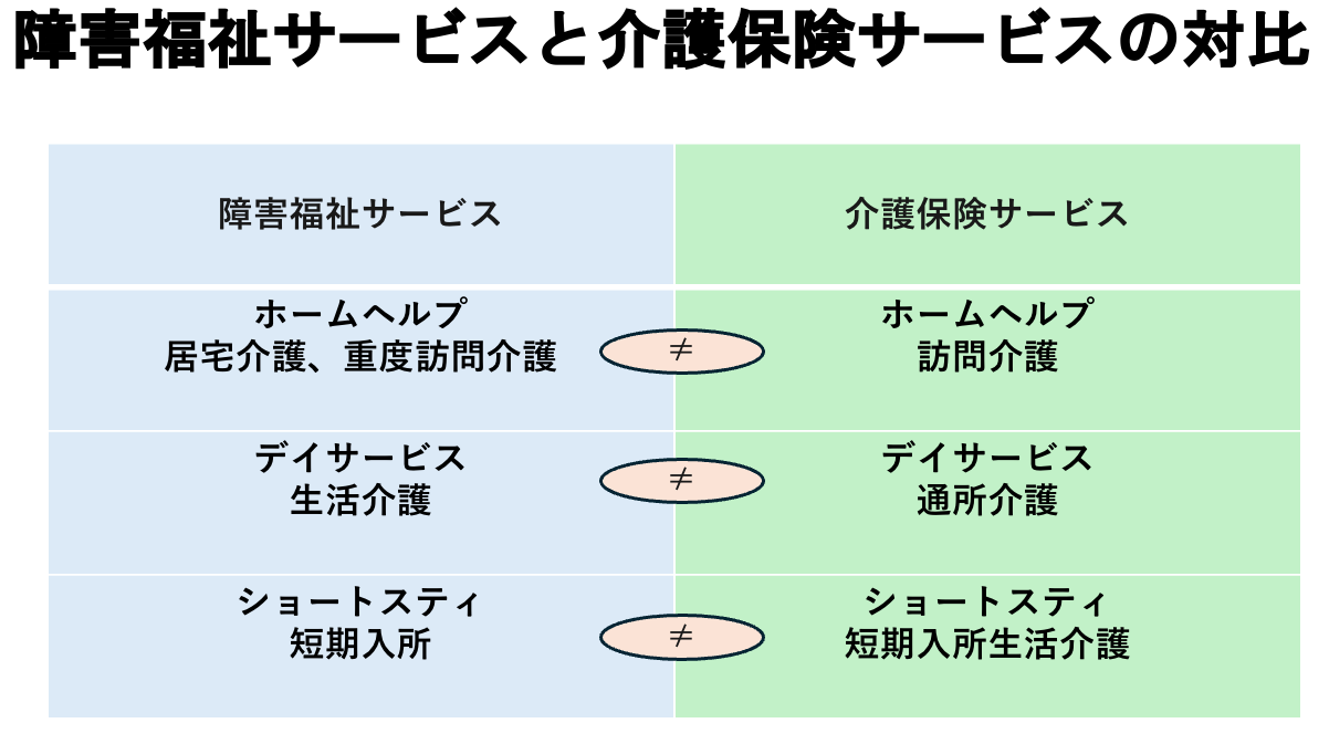 また、同サービス等給付費の対象となるのが、介護保険サービスと内容が重なる居宅介護、重度訪問介護、生活介護、短期入所となります。